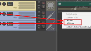 REAPER スクリプトによるセンド Interactive Toolbarから以前ご紹介したスクリプト「Interactive Toolbar」内にセンド用の機能があります。(1)まずはセンド先に設定したいトラックを選択。(2)Interactive Toolbarのセンドの... 2022.01.18 REAPERスクリプト