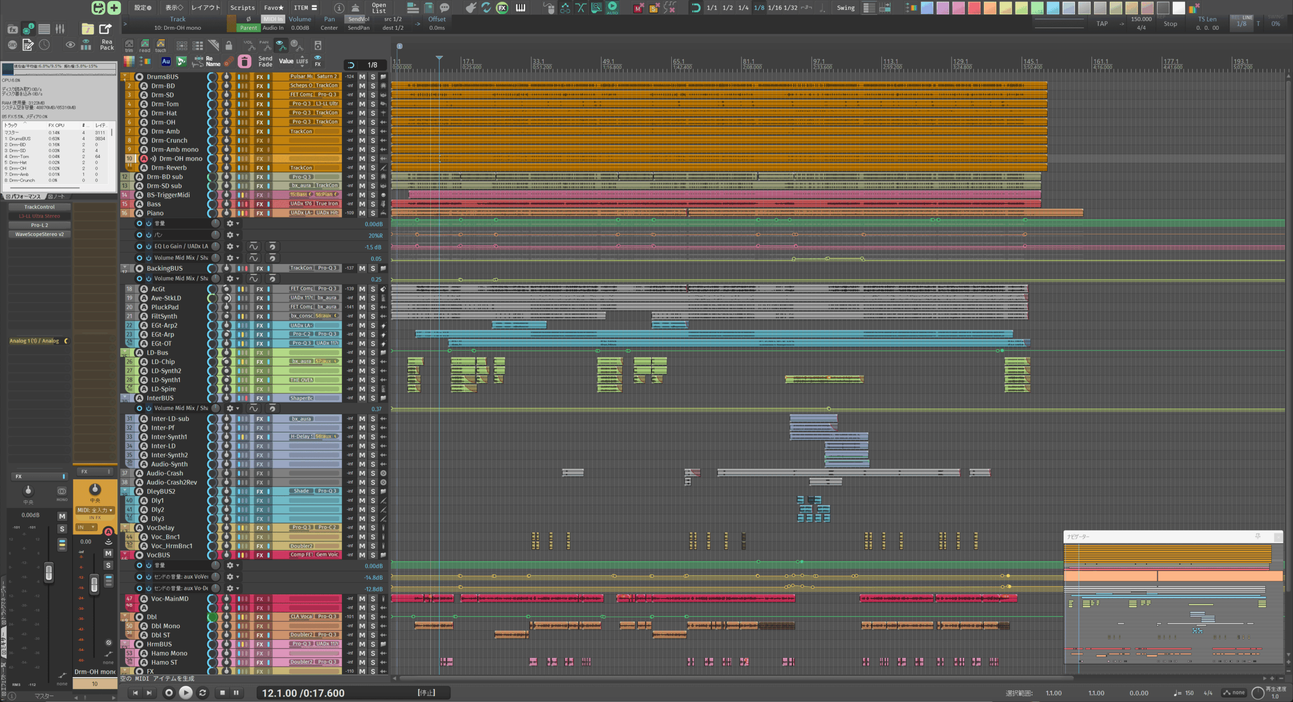 私なんかは長年デフォルトテーマを使い続けてきたためか、デフォルトテーマ寄りのデザインでないと違和感を覚えてしまう体になってしまいました(ゆえにReapertips Themeが好み)。ですがREAPER使用歴の短い方や、これからREAPERに乗り換えてみようかなーみたいな方には、カスタマイズのしやすさも含めるとnvk_THEMEのほうがオススメしやすいです。